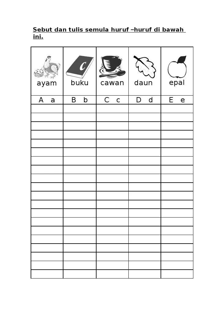 Lembaran kerja eja tulis prasekolah bahasa melayu. Perkara sebegitulah yang amat dibimbangi terutamanya kepada ibu bapa dan pendidik. Latihan kenali huruf vokal aeiou untuk ppki dan prasekolah. Pra sekolah, tahap 1 dan tahap 2.